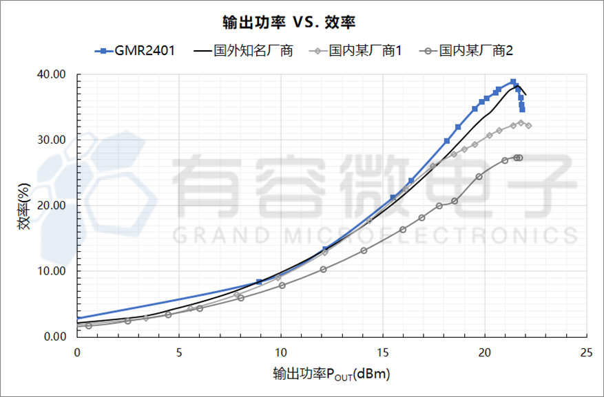 GMR2401采用了与其他厂家完全不同但易于集成的CMOS PA设计流程,从设计到布图完全自主知识产权,相关设计已申请专利和布图设计知识产权。