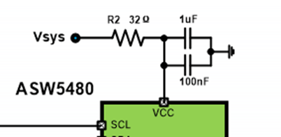 建议靠近ASW5480端,VCC引脚串个32Ω电阻供电,滤波电容1uF和100nF并联使用,这样滤波效果更好。