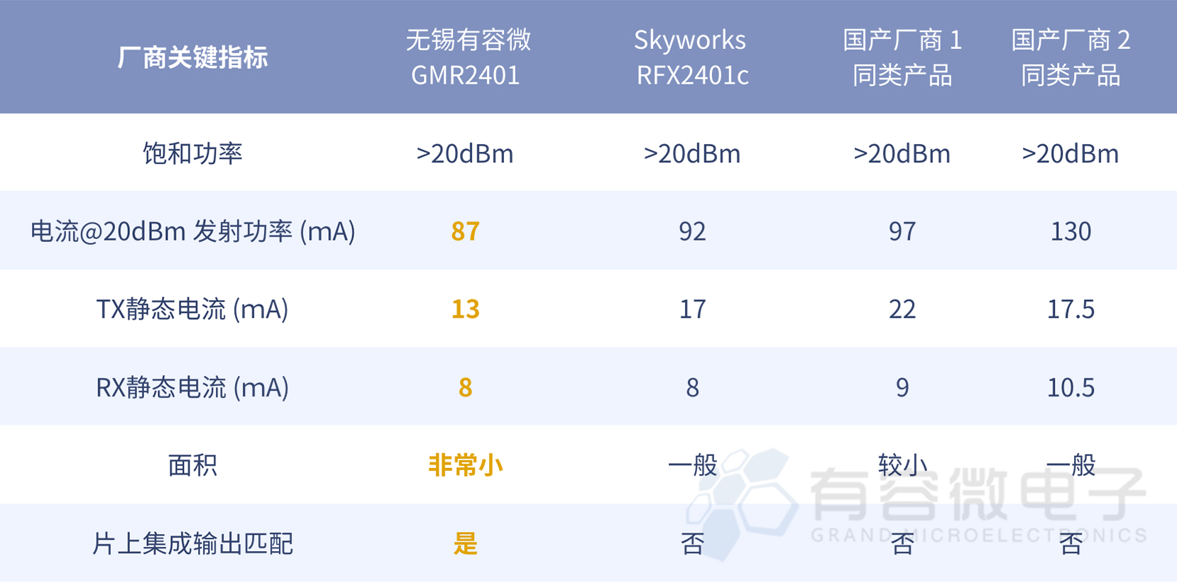 表(1): 无锡有容微GMR2401和国外主流友商以及两家主要国内友商的对比
