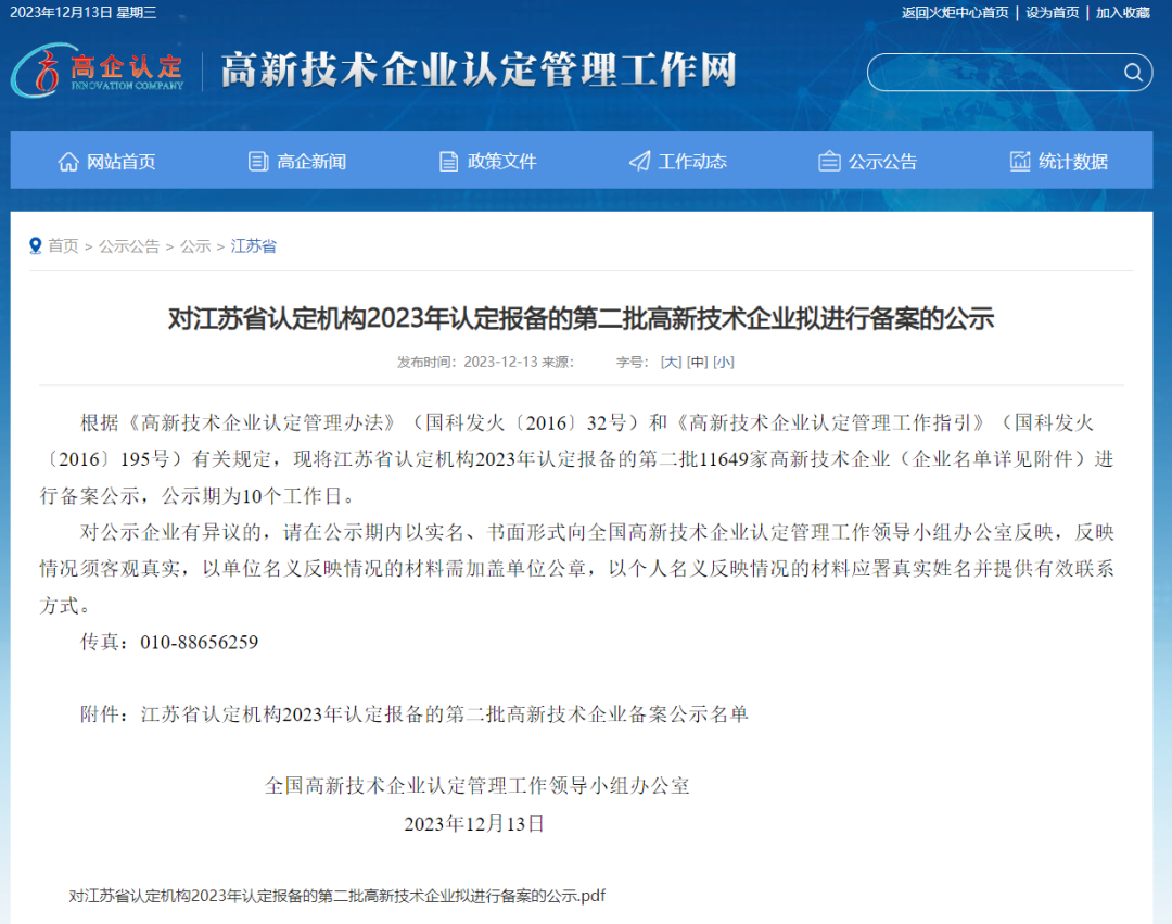 近日,全国高新技术企业认定管理工作领导小组办公室发布公示,将2023年认定报备的第二批国家高新技术企业进行备案公示,无锡有容微电子荣获认定。